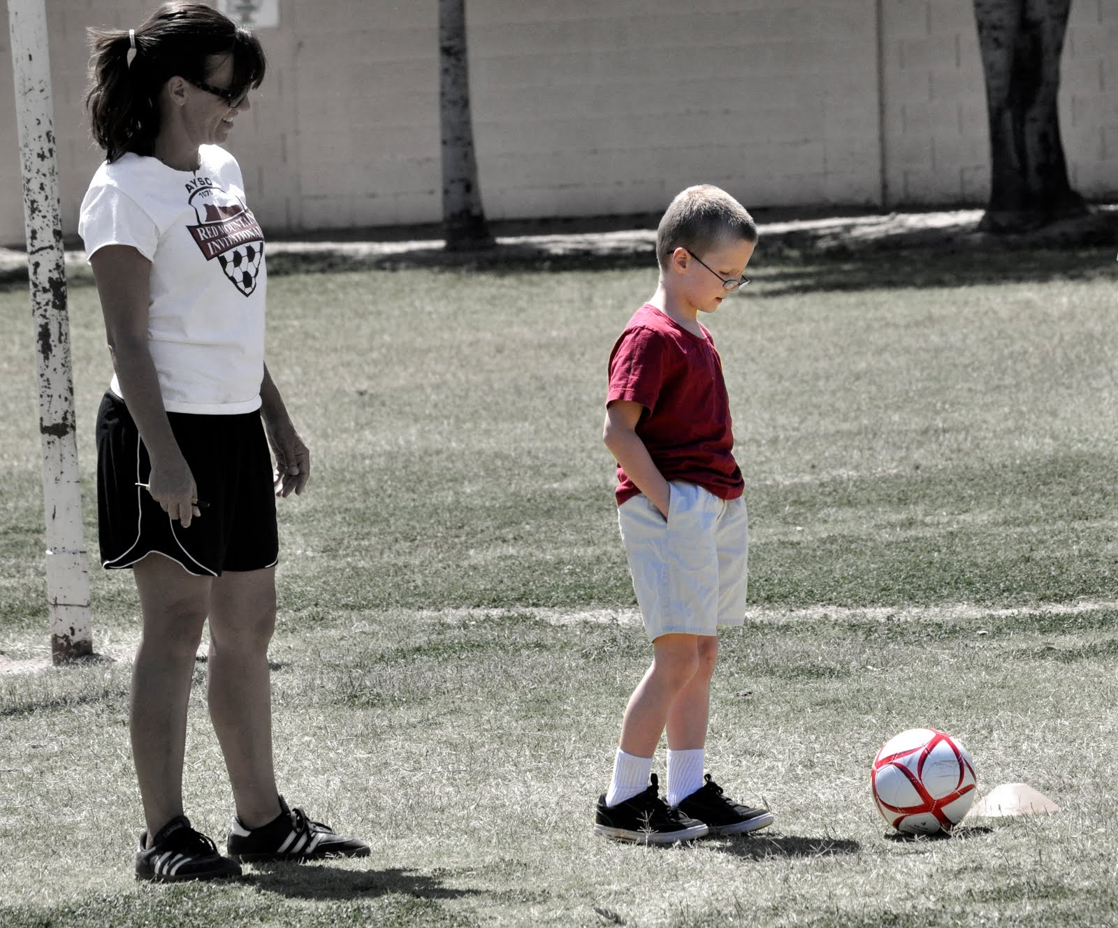 So, Chris wants to sign Sam up for Soccer next fall. The invitation paperwork said that if this was his first year then there is an evaluation. I interpreted this as “try-outs”….so when we got there and he was the only kid on the field. I wondered a little bit.